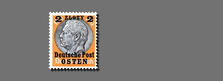 The first set of definitives created specifically for use in German-occupied Poland was the existing Hindenburg medallion stamps of Germany overprinted in black with new values and the inscription Deutsche Post Osten (German post in the East). Issued in December 1939, the stamps remained officially in circulation until September 1940.