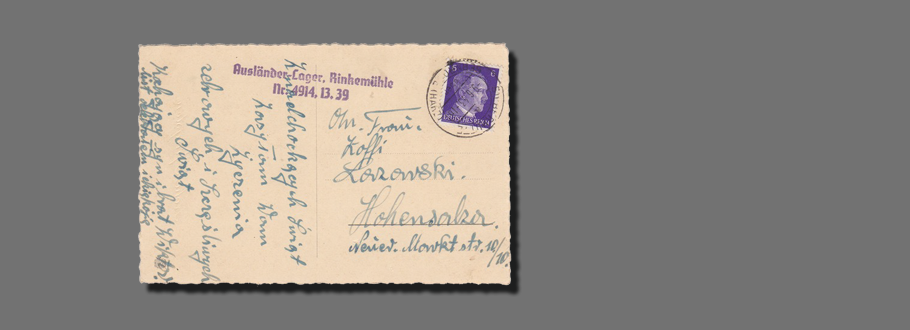 Due to a diminishing German workforce, the Nazi authorities became ever more reliant on labour from occupied territories. Thousands of workers were housed in camps across Germany. This postcard was mailed from an Ausländer-Lager (foreigners’ camp) in the Wartheland. This type of camp probably housed workers from different countries across Europe.