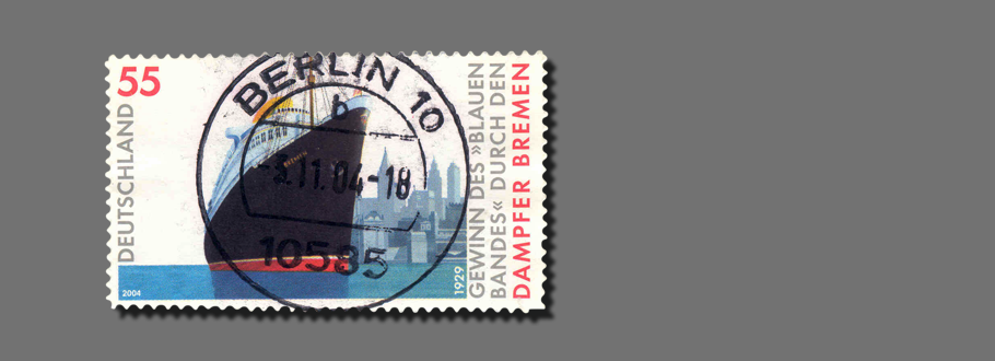 This stamp was issued on 8 July 2004. The SS Bremem won the ‘Blue Riband’ for her first time in 1929, an accolade marking the record highest speed for a passenger liner crossing the Atlantic Ocean westbound in regular service. The ship is also interesting to collectors of ‘catapult’ mail.