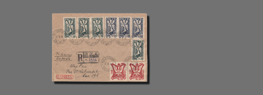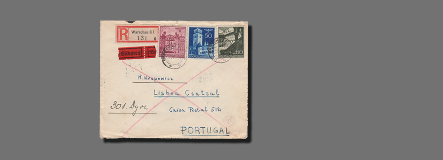 In order to communicate with civilians in occupied territories, the British organised mail services via covert Post Office Boxes based in neutral countries, such as Portugal. This express registered letter was posted from Warsaw to Post Box 512, Lisbon; from here it was passed on to Polish forces in Great Britain.